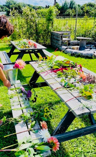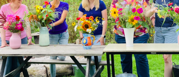 We organiseren een bloemenworkshop ‘bloemarrangement in vaas’ op ons plukveld tijdens de openingsuren voor minimum 2 tot 4 personen.